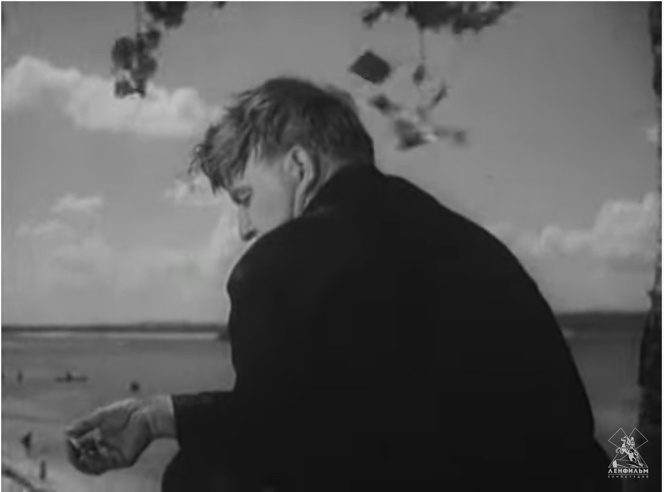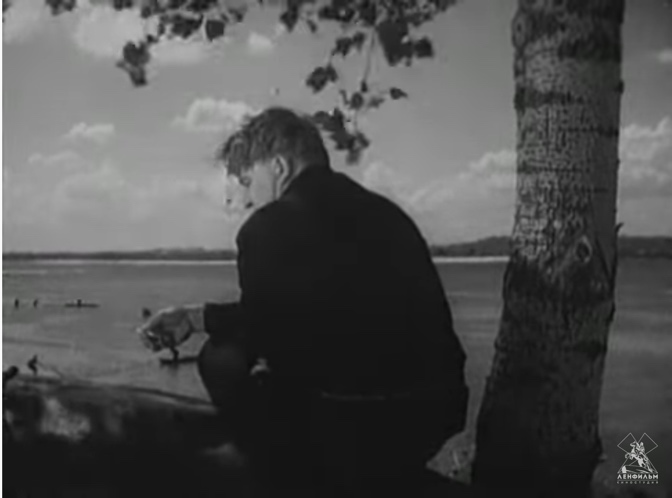 On n’entrera pas dans cette querelle que l’on peut étayer de diverses manières et qui l’a beaucoup été du côté d’Ouroussevski avec de très bonnes raisons : la formation de celui-ci aux ateliers de l’Institut Vkhoutein (sur sa fin : il ferme en 1930), l’enseignement qu’il a reçu de la part d’Alexandre Rodtchenko en photographie, sa pratique de peintre (influencée par l’enseignement du graveur Vladimir Favorski) avant celle d’assistant puis d’opérateur à la Mejrabpom devenue Soyouzdetfilm, d’opérateur de guerre, puis aux studios Gorki et Mosfilm sur des films dus à Mark Donskoï, Iouli Raïzman, Vsevolod Poudovkine et opérateur de l’un des films-phares du « Dégel » Sorok pervii (Le Quarante-et-unième, 1956) de Grigori Tchoukhraï – après avoir déjà collaboré partiellement avec Kalatozov sur Pervii echelon (Le premier échelon) suite au décès de l’opérateur en titre Iouri Ekeltchik en plein tournage2.
