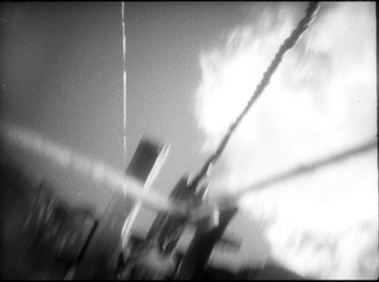 On a déjà souligné le fait que ces choix structuraux – qu’ils concernent la composition géométrique de l’image ou les contrastes entre ses plans dans la profondeur fictive qu’elle développe – ont la caractéristique d’être à la fois très prégnants plastiquement et de faire l’objet, par le montage ou par le mouvement de l’appareil, de remaniements radicaux allant dans certaines scènes clés jusqu’au chaos et à l’explosion. Il est alors fait accueil à l’aléa. À cet égard sont exemplaires les scènes de répression dans Soy Cuba : au rassemblement des manifestants étudiants, à la prise de parole d’Enrique, juché sur le socle d’une statue lui donnant une prééminence sur la foule, succède l’intervention de la police attaquant le rassemblement à coups de lances à incendie puis à coups de revolver qui démantèlent complètement l’organisation qui prévalait jusque-là. Comme dans les scènes analogues de Strachka (La Grève, 1925) qu’avait pertinemment commentées sous cet aspect Noël Burch dans Praxis du cinéma39, on assiste à un remaniement brutal d’un ordre construit, à son démantèlement et à l’irruption de l’aléatoire.