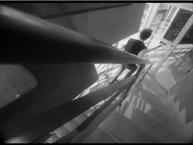 Pour ce qui est de la composition de l’image, revenons, pour le faire comprendre sans équivoque, aux principes de construction de celle-ci préconisés par Rodtchenko dans son enseignement et dans ses articles35 afin d’en retrouver la mise en œuvre chez Kalatozov mais distribuée sur plusieurs cadres (plans) successifs. Ces principes se fondent sur une série d’interactions au niveau de la structure de surface de l’écran : celles des « formants » du cadre sur le plan géométrique (en à-plat) – ainsi les verticales d’un tracé (voie ferrée dans Nepobediye [Les Invincibles, 1943]), chemin agricole dans Pervy echelon (Le premier échelon, 1956) ; ou entre les différents plans dans la profondeur de l’image par le moyen d’« indicateurs » (obliques et diagonales) : les rails de chemin de fer – dans Un clou dans la botte notamment – sont particulièrement probants à cet égard, comme la balustrade de l’escalier que gravit Enrique pour gagner le toit de l’immeuble où est caché un fusil à lunette dans Soy Cuba. Ils permettent également des variantes compositionnelles (combinatoire) que le cinéma démultiplie et conduit à des séries de reprises, répétitions et renversements grâce au montage. Eisenstein avait donné, dans son analyse d’une séquence du Cuirassé Potemkine (la séquence dite « des yoles ») un exemple particulièrement probant de ce travail de construction dynamique dont la caractéristique – outre ses composantes de surface et de profondeur – est de conduire à un saut qualitatif par renversement de cet ordre plastique – qu’il appela ex-statique dans les années 193036.
