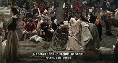 Indeed, the director first offers a filmic litterally representation of Brueghel the Elder’s painting: Christ carrying the Cross ; then, in a second time, he stages in a movie way the picture. This onlooker’s particular experience enables to ask ourselves what is the nature of his activity, first in front of a painting, then in front of a movie, when the onlooker « images » what he doesn’t see, in obedience to what is suggested within the pictural frame, or what he sees/hears within filmic frame. If the off-screen of the picture seems to be a case of what Sartre calls the Imaginary, filmic off-screen belongs to different kinds of solicitations of spectator’s activity, in which one produces, from what he « images » as off-screen, a part of filmic perceptive activity.
