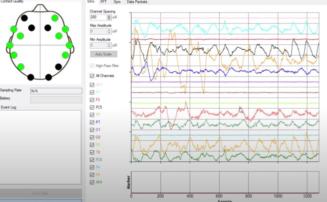 L'activité musculaire : Le casque Emotiv peut également mesurer l'activité musculaire, ce qui permet de distinguer l'activité cérébrale de l'activité musculaire.