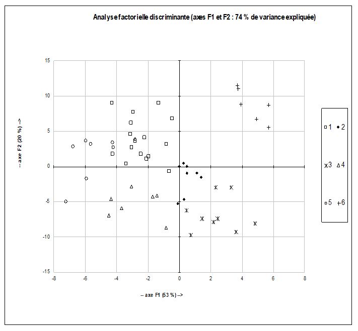 Figure 1 : Répartition des unités significatives par l’analyse factorielle discriminante